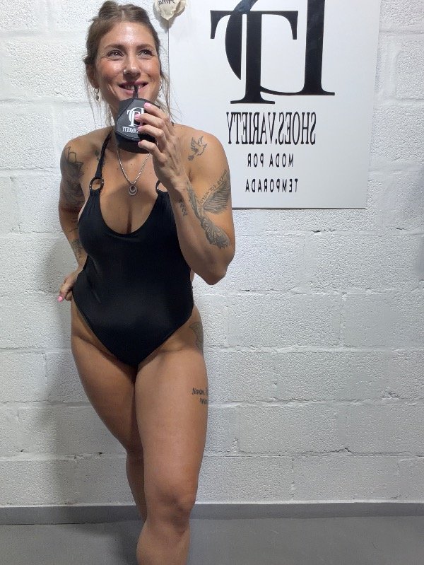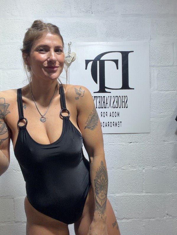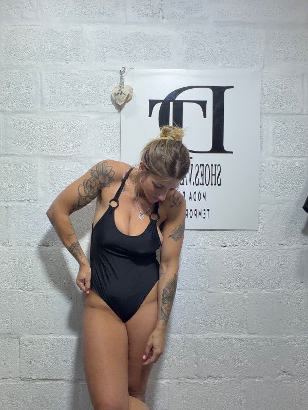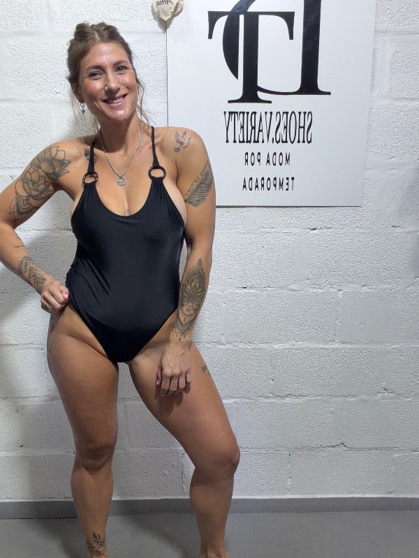 Maya enteriza con arandela en cada tira de hombro. Espalda cruzada