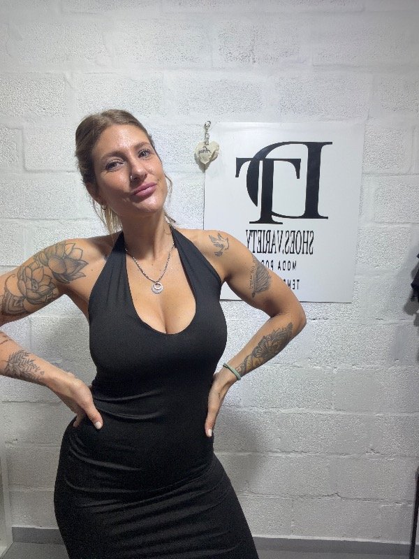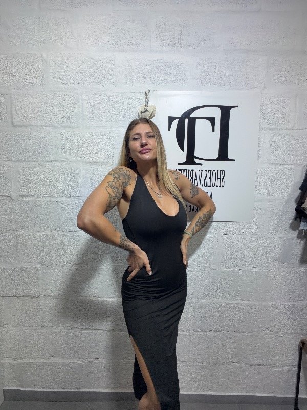 Talle Unico.. tiras regulables al cuello. Abarca hasta un 100 de busto. Tajo en la pierna! Bien al cuerpo.